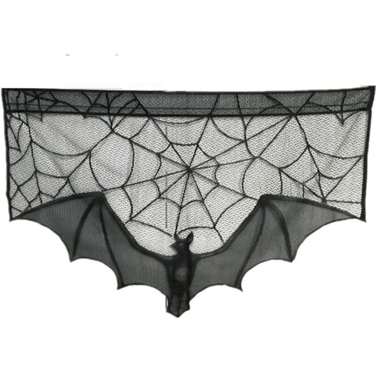 Svart Halloween-gardin med spindelnät och fladdermöss
