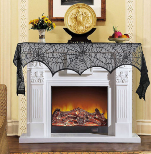 Svart Halloween-gardin med spindelnät och fladdermöss